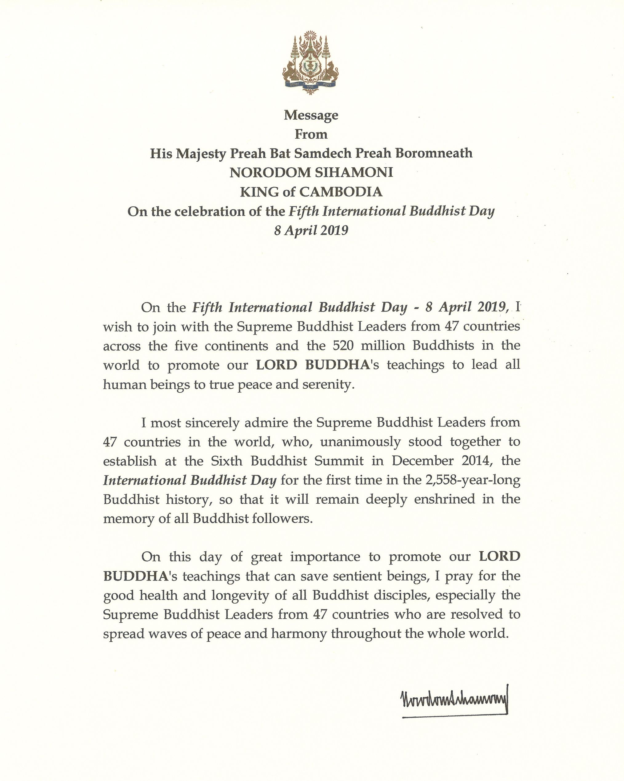 「世界仏教 興隆の聖王」ノロドム・シハモニ国王陛下より