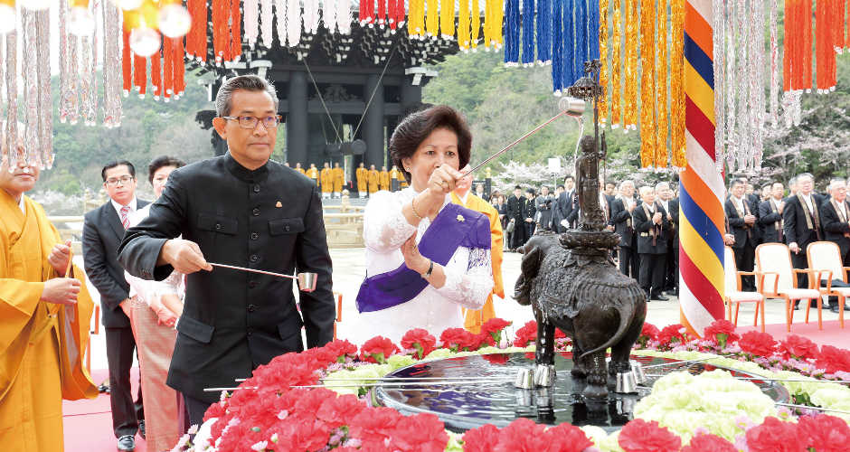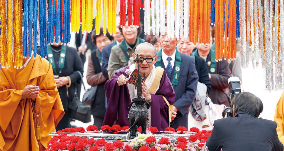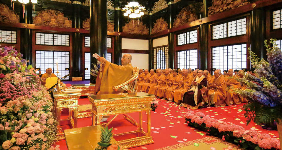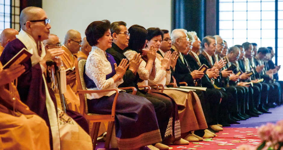 「仏教の日」大法会 釈尊の御生誕を祝い 一心に合掌を捧げられる
