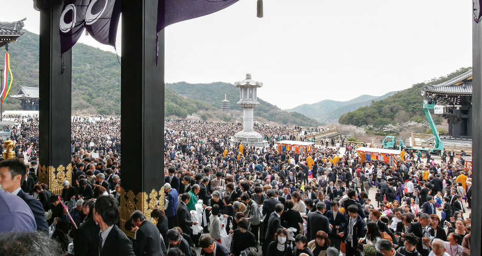 本堂前広場は 参詣者で埋め尽くされた