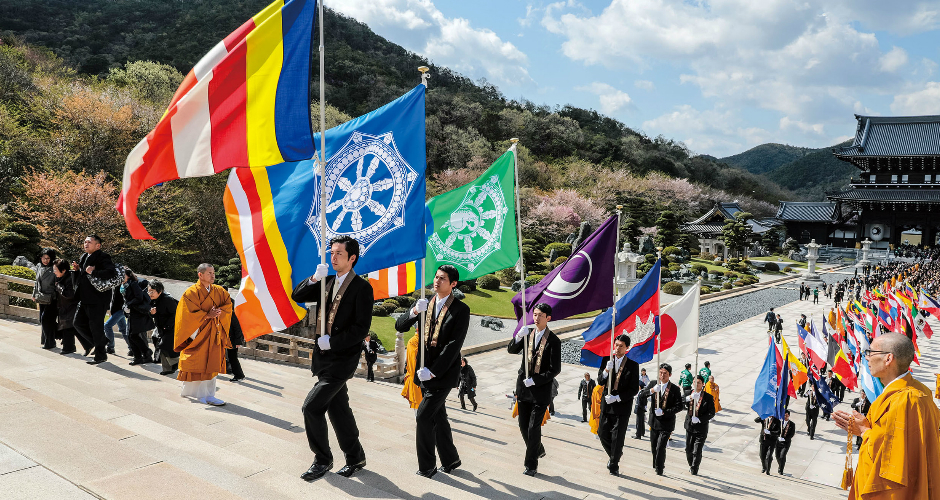 仏旗 佛教サミット旗 仏教の日旗を先頭に