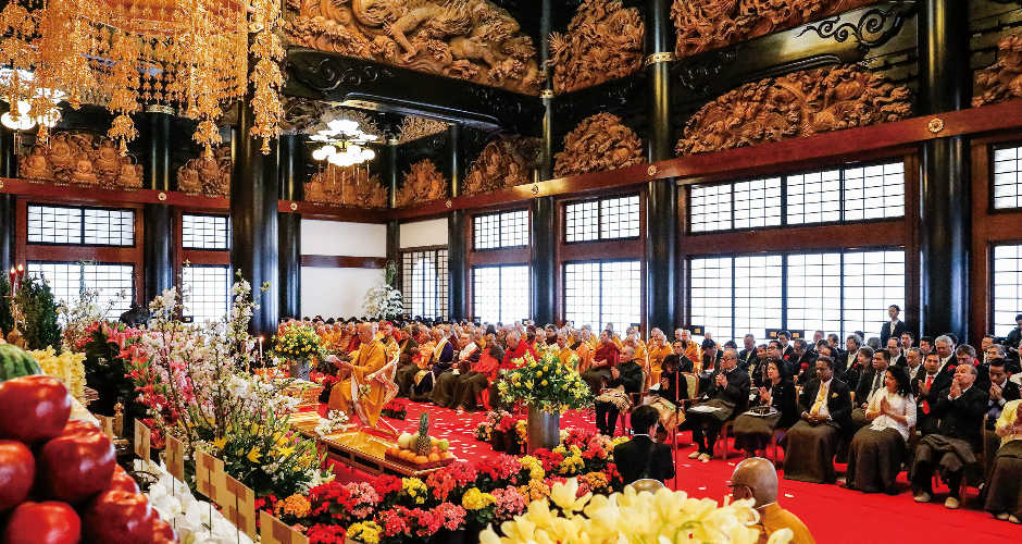 平成30年4月8日、聖地「佛教之王堂」念佛宗 総本山にて、カンボジア王国 ノロドム・シハモニ国王陛下を主賓としてお迎えし、世界五大陸を代表して14ヶ国の仏教最高指導者、貴賓 ノロドム・ボパ・デヴィ王女殿下、スリランカ国会副議長閣下、カンボジア宗教大臣閣下を始めとする世界の国家指導者の方々 御臨席の下、お釈迦様のご生誕を共に祝い、4回目を迎える「仏教の日」が、盛大に執り行われました。