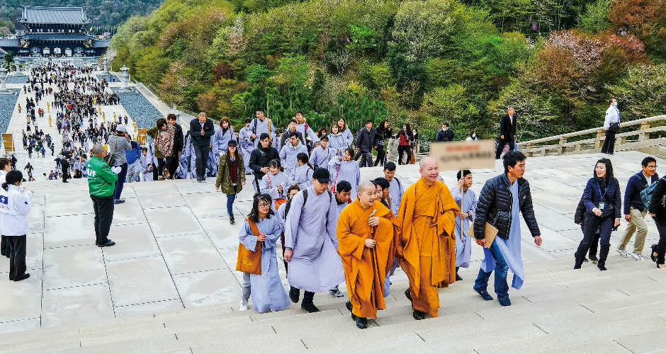 聖地「佛教之王堂」の広大な境内に 参詣者が 続々と押し寄せる