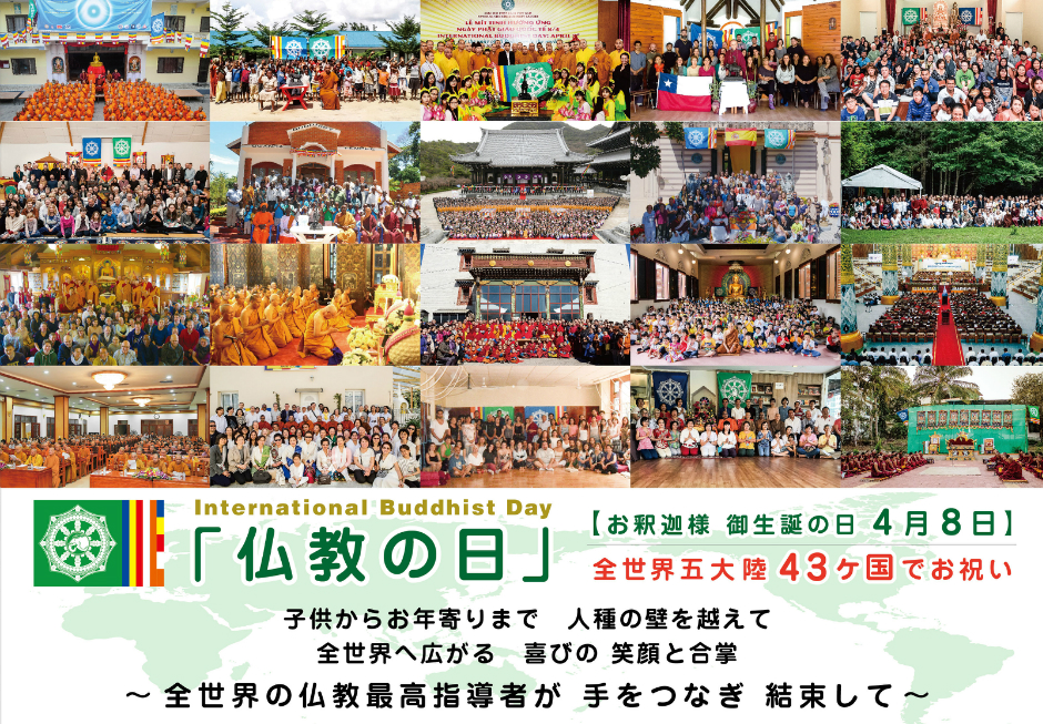 釈尊御生誕より二千五百年 仏教史上 誰も成し得なかった偉業が2014年に開催された 第六回佛教サミットにて 現実のものとなり全世界共通の「仏教の日」は 今年で三回目を迎えます。