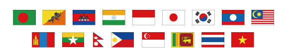 バングラデシュ、ブータン王国、カンボジア王国、インド、インドネシア、日本、韓国、ラオス、マレーシア、モンゴル、ミャンマー、ネパール、シンガポール、スリランカ、タイ王国、ベトナム
