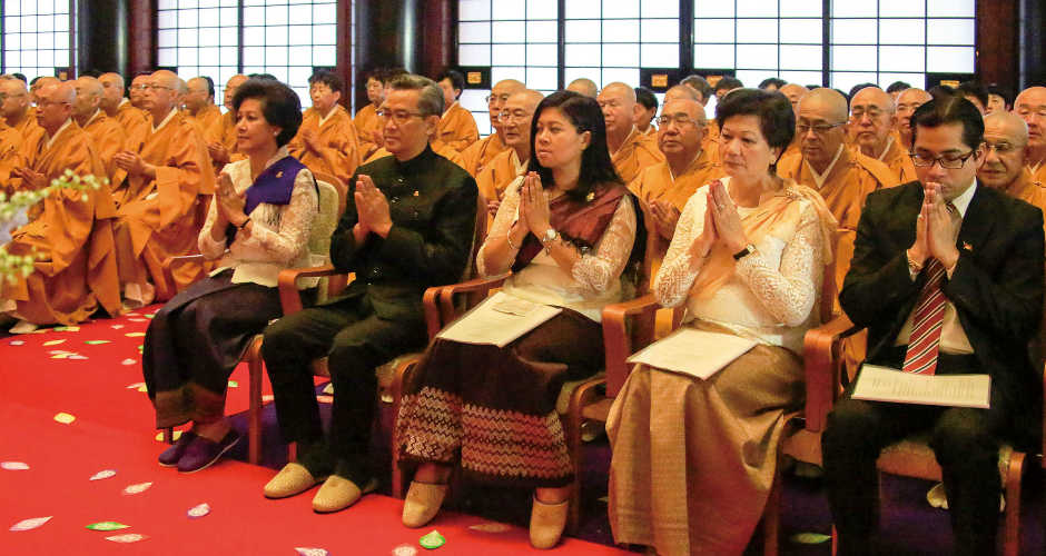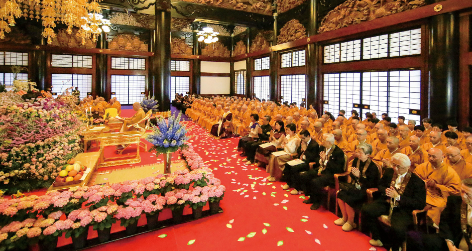 「仏教の日」大法会 釈尊の御生誕を祝い 一心に合掌を捧げられる