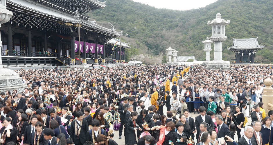 本堂前広場は 参詣者で埋め尽くされた