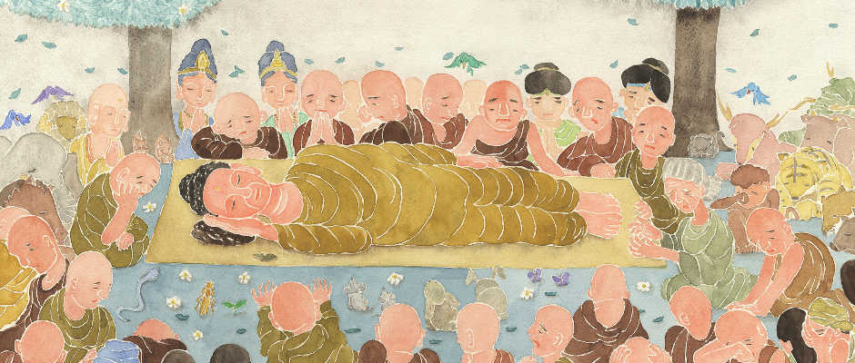 真実の道を自らの身をもって歩み、休むことなく人々へ説き続けられたお釈迦様は、80歳の御歳、2月15日にクシナガラの沙羅双樹の下にて、寂かに入滅されました。
