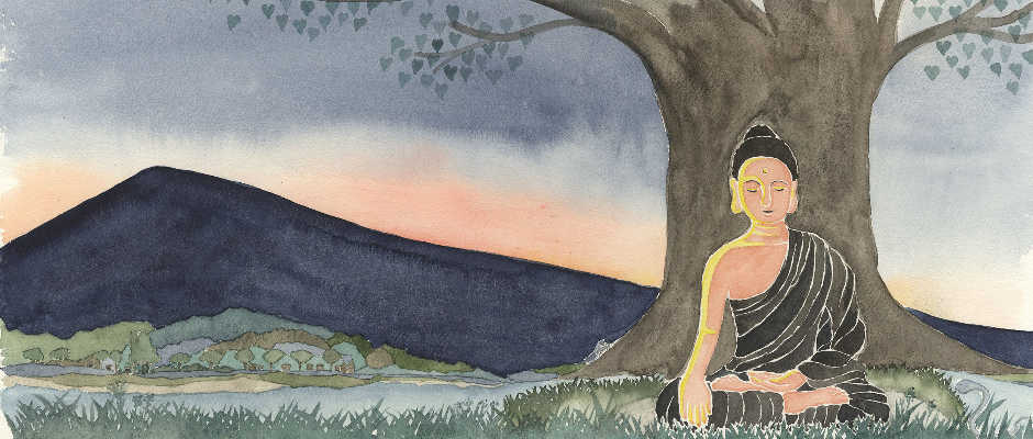 そして、6年間にわたり厳しい苦行を積まれた末、苦行は真の道ではないと、苦行をも捨て去って、35歳の御歳、12月8日、暁の明星が輝くとき、ブッダガヤの菩提樹の下にて悟りを開かれ、あらゆる苦を離れた真のやすらぎの境地に達せられました。