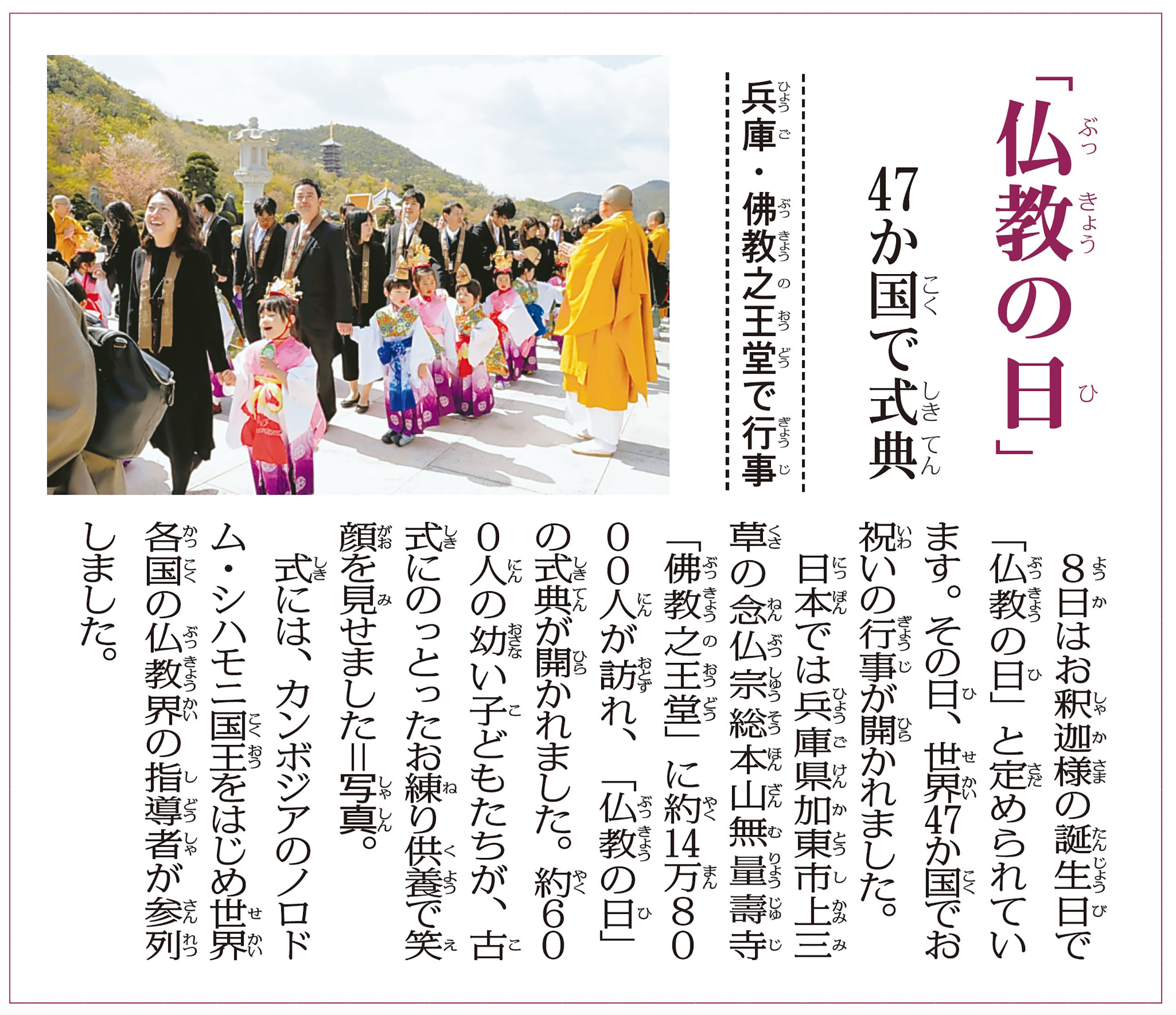4回目を迎えた「仏教の日」が報道されました