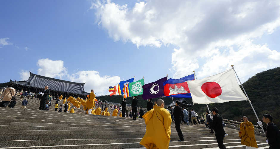 伝統衣装に身を包み 全世界の仏教徒の聖地に参詣される