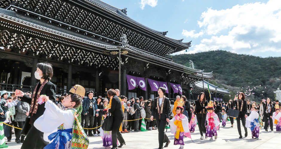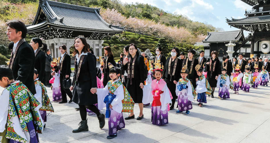 美しい伝統衣装を身にまとい にこやかに歩む 稚児たち