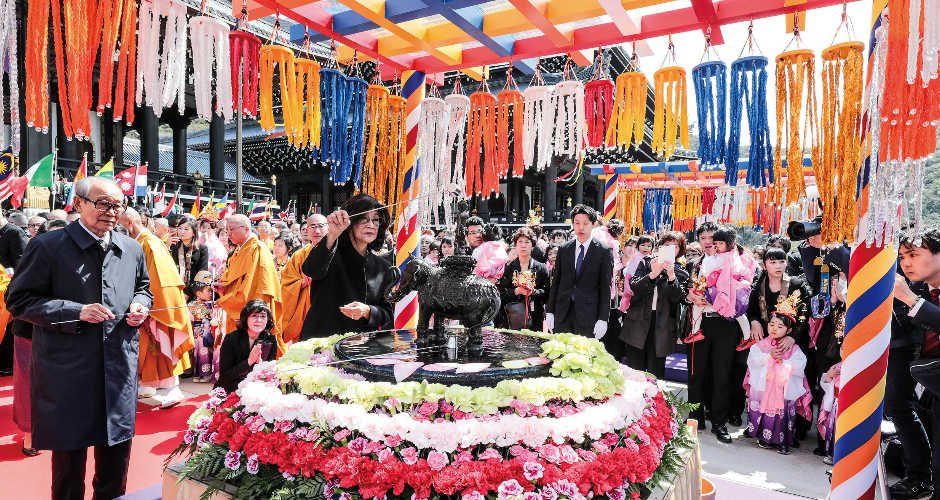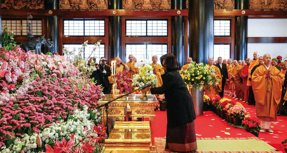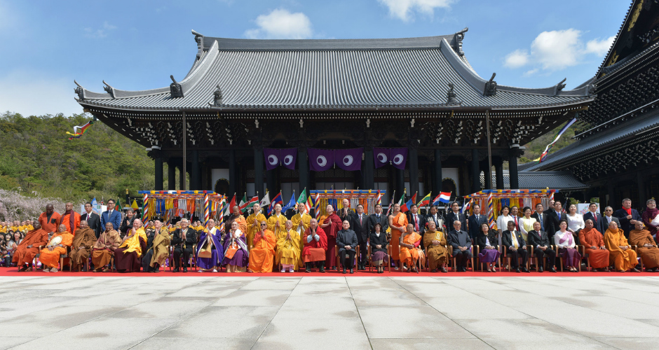 平成30年4月8日、聖地「佛教之王堂」念佛宗 総本山にて、カンボジア王国 ノロドム・シハモニ国王陛下を主賓としてお迎えし、世界五大陸を代表して14ヶ国の仏教最高指導者、貴賓 ノロドム・ボパ・デヴィ王女殿下、スリランカ国会副議長閣下、カンボジア宗教大臣閣下を始めとする世界の国家指導者の方々 御臨席の下、お釈迦様のご生誕を共に祝い、4回目を迎える「仏教の日」が、盛大に執り行われました。