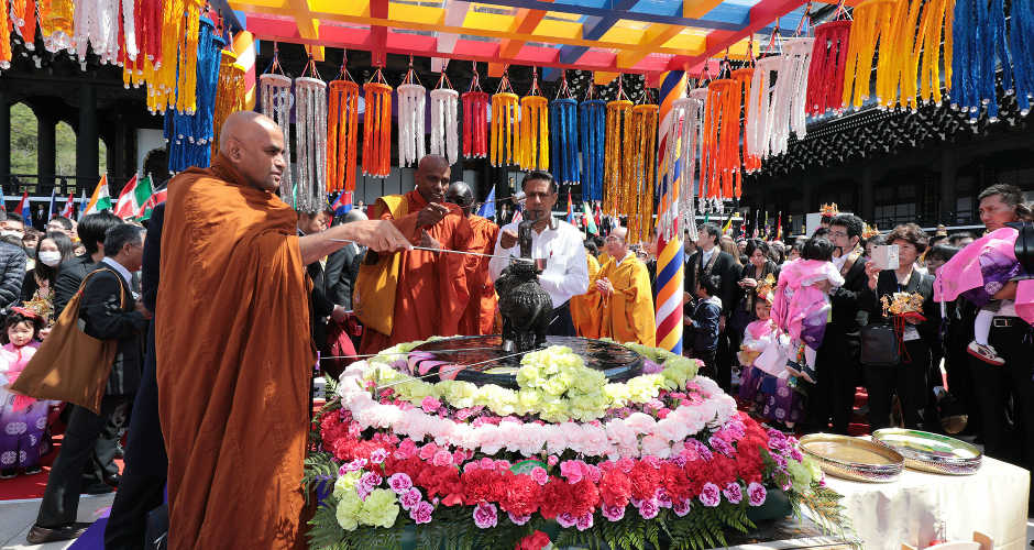 世界各国より出席された仏教最高指導者 国家指導者も お水かけ供養をされる